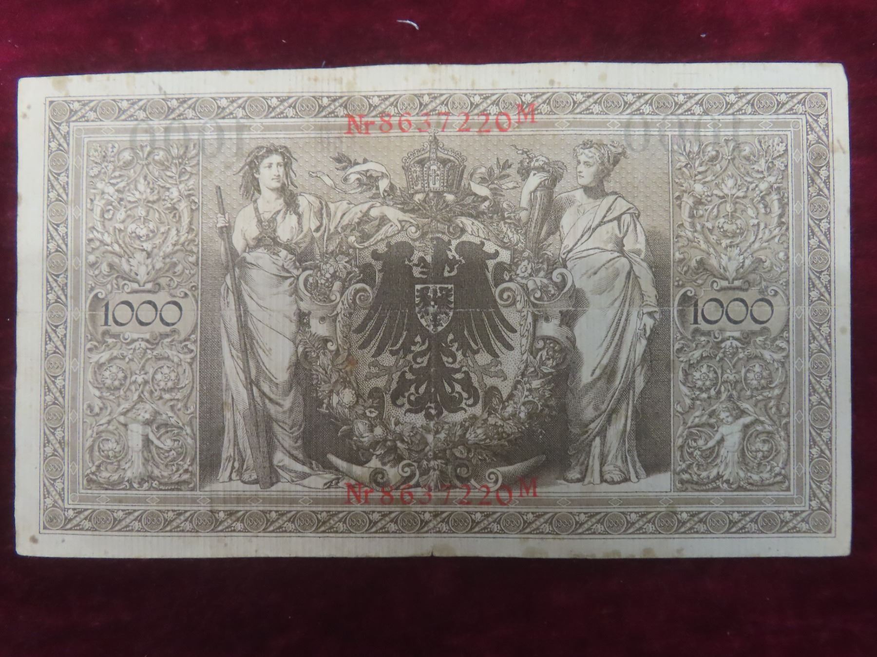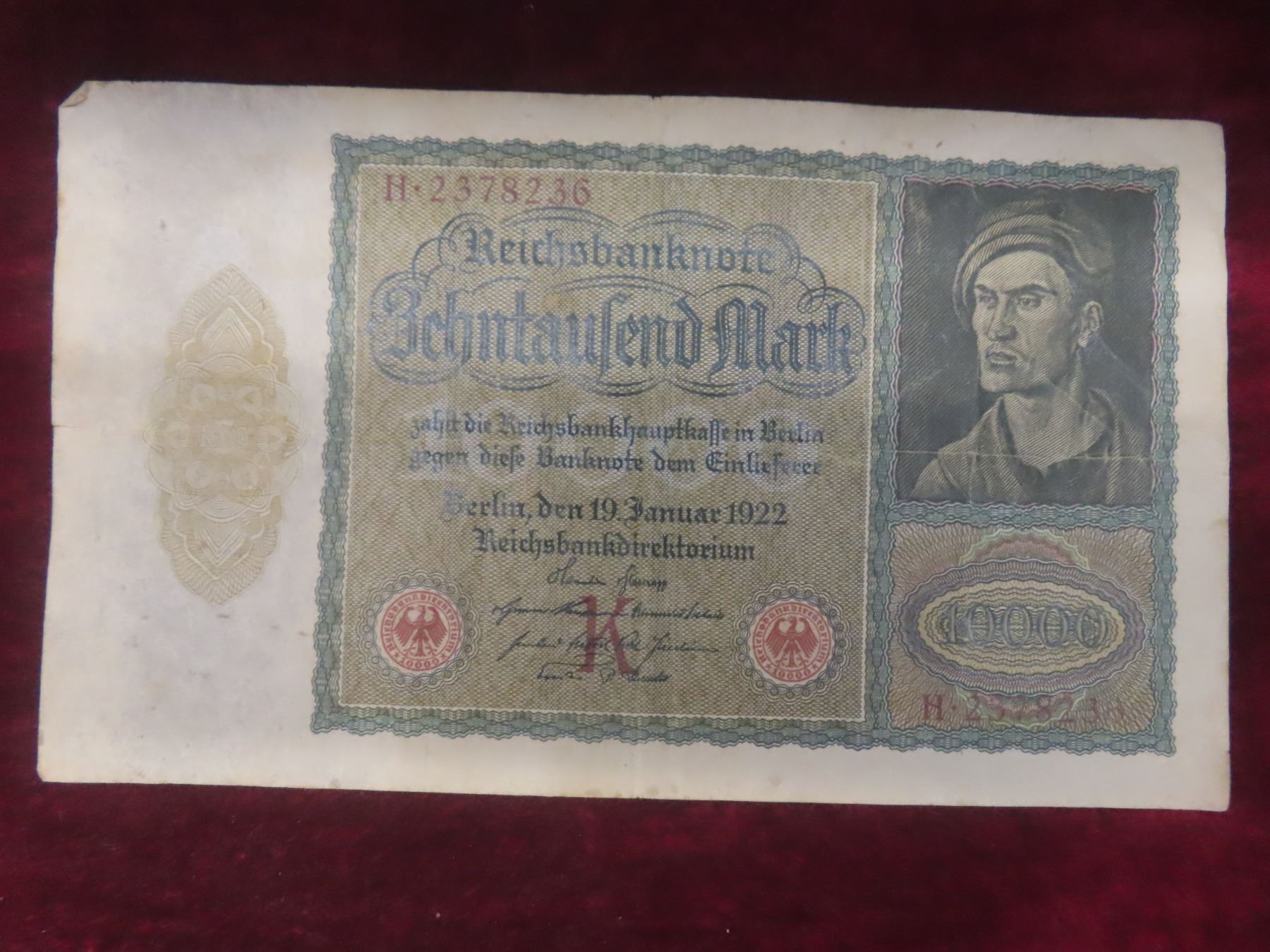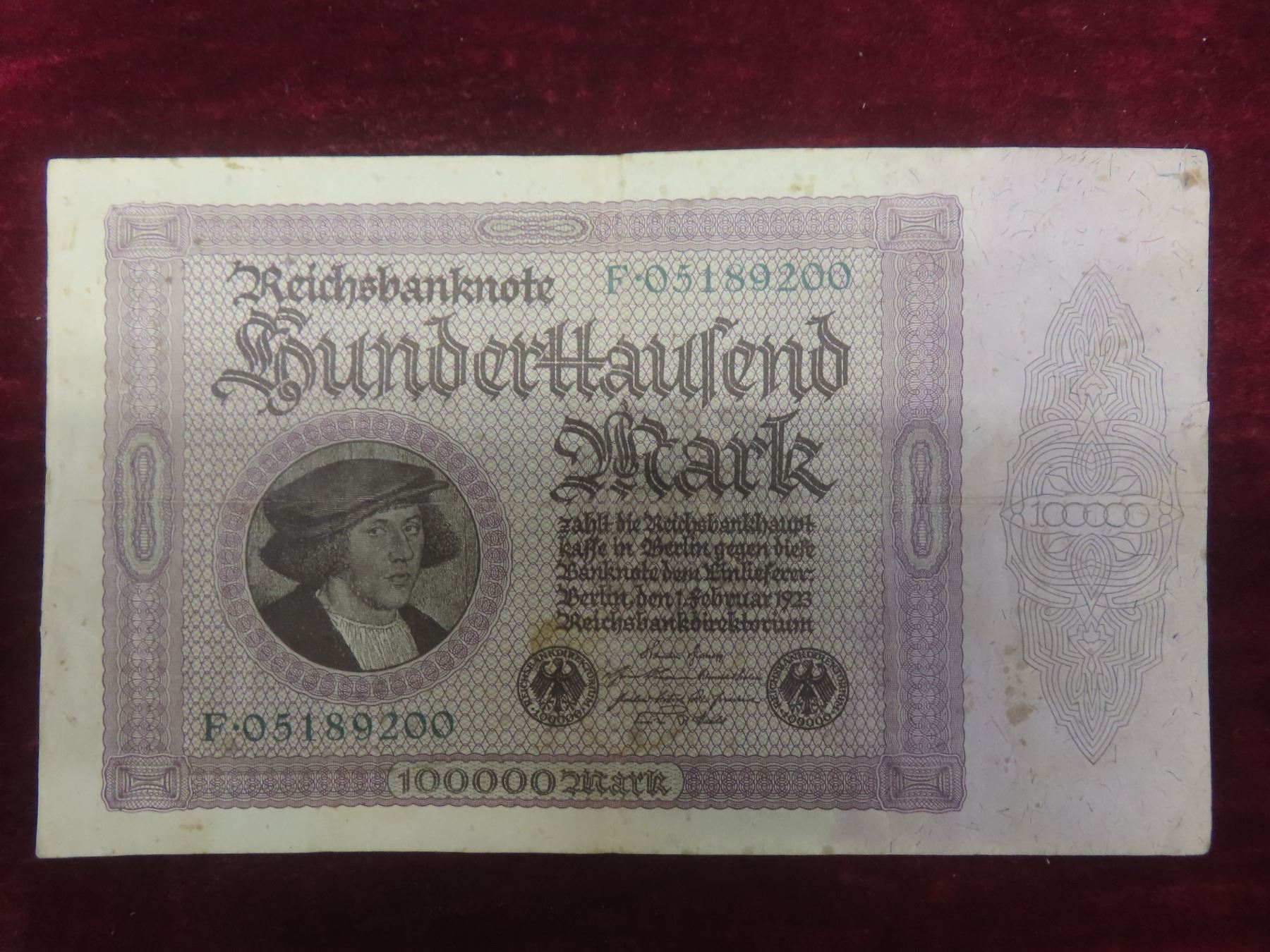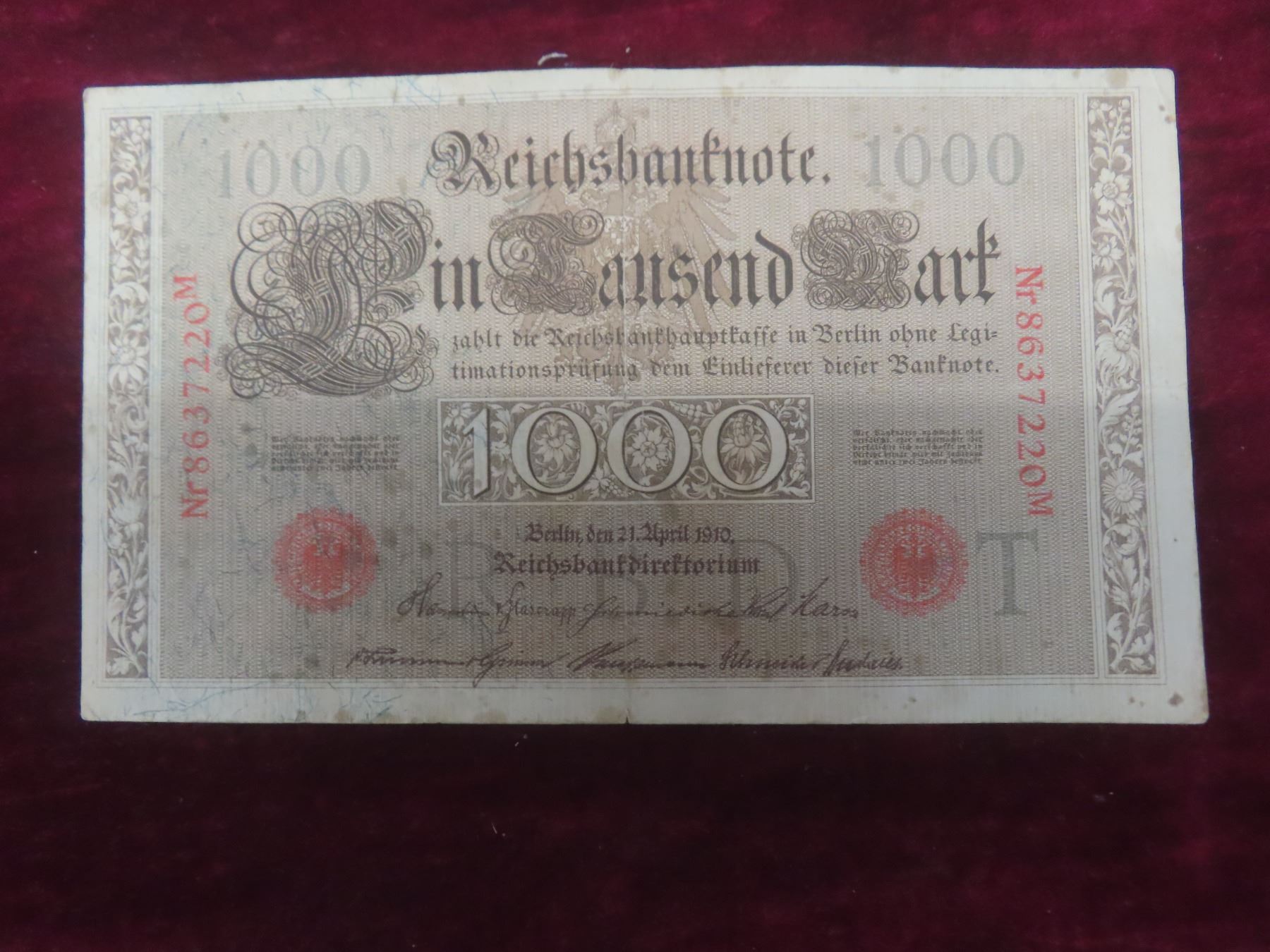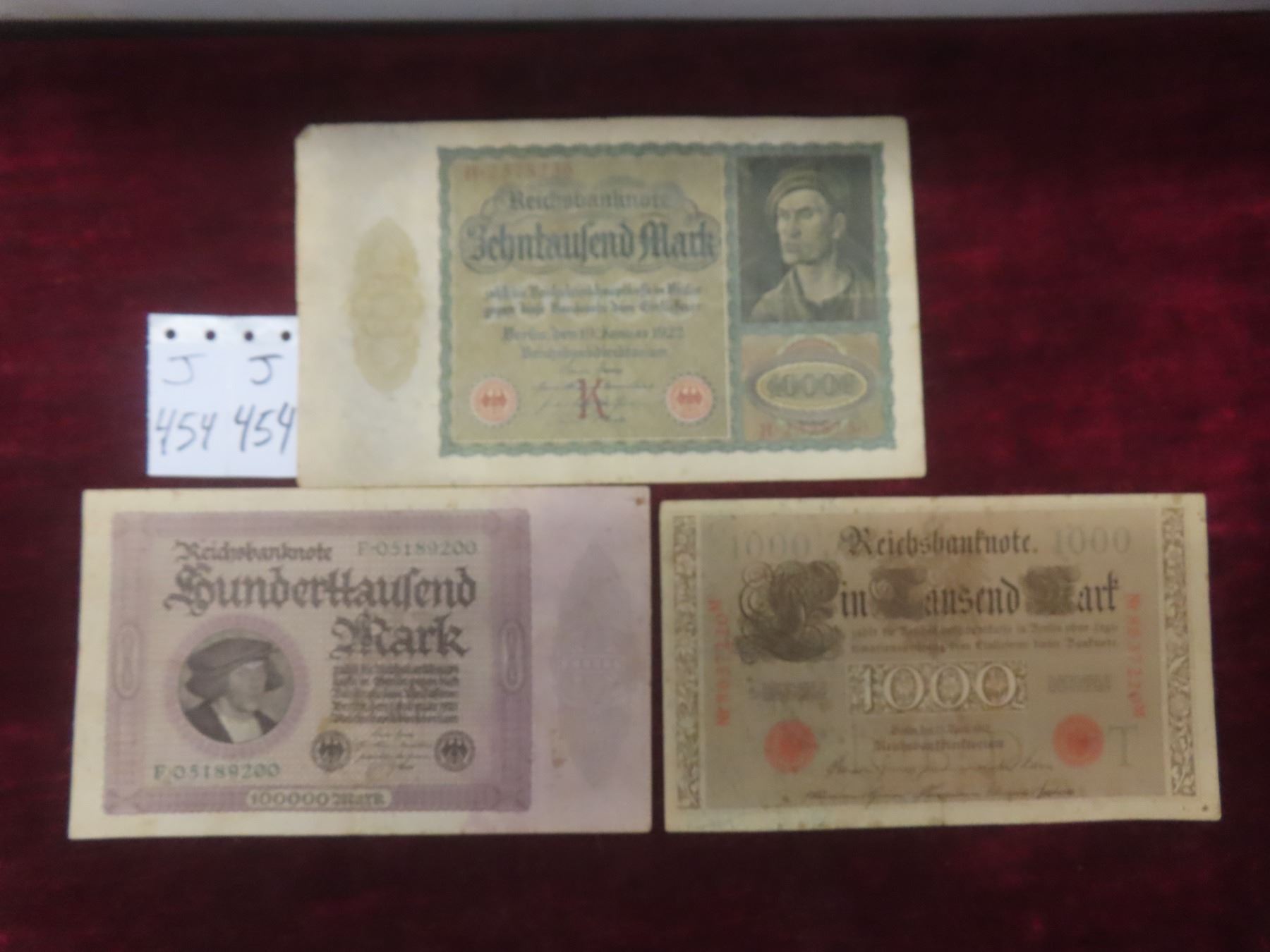 German Banknotes: 1910 (1000 Mark), 1923 (100,000 Mark), 1922 (10,000 Mark)