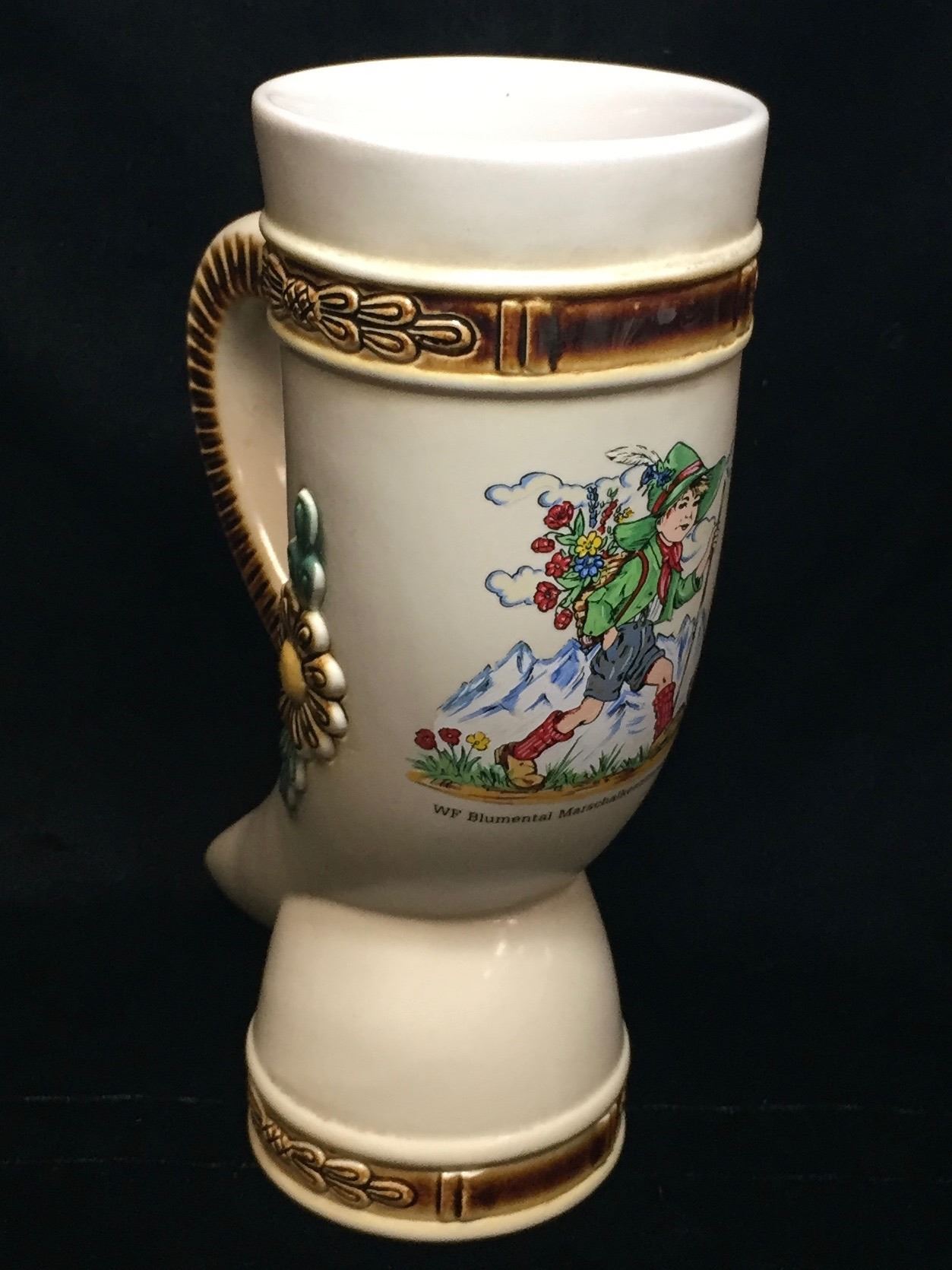 Lot 343; German Beer Mug Sabre Tooth Style, Writing 'WF Blumental Marschalkenzimmern 86', Sylized