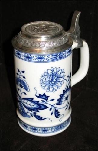 German Blue Onion Stein, 1980, Kirin Beer Mug Collection, 6.5" tall.