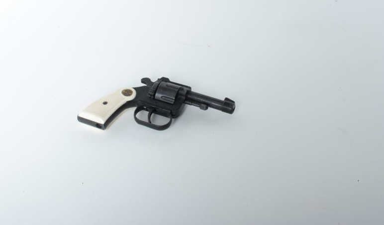 short caliber, 2.5” barrel, black finish, simulated checkered ivory grips, S/N 149003, in overall very good condition. (Modern/PPT). Est.: $30-$60.