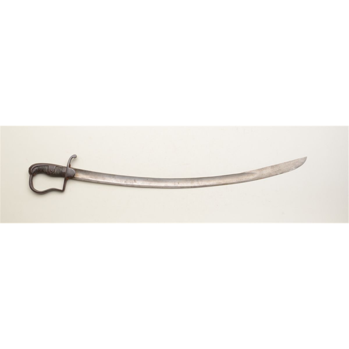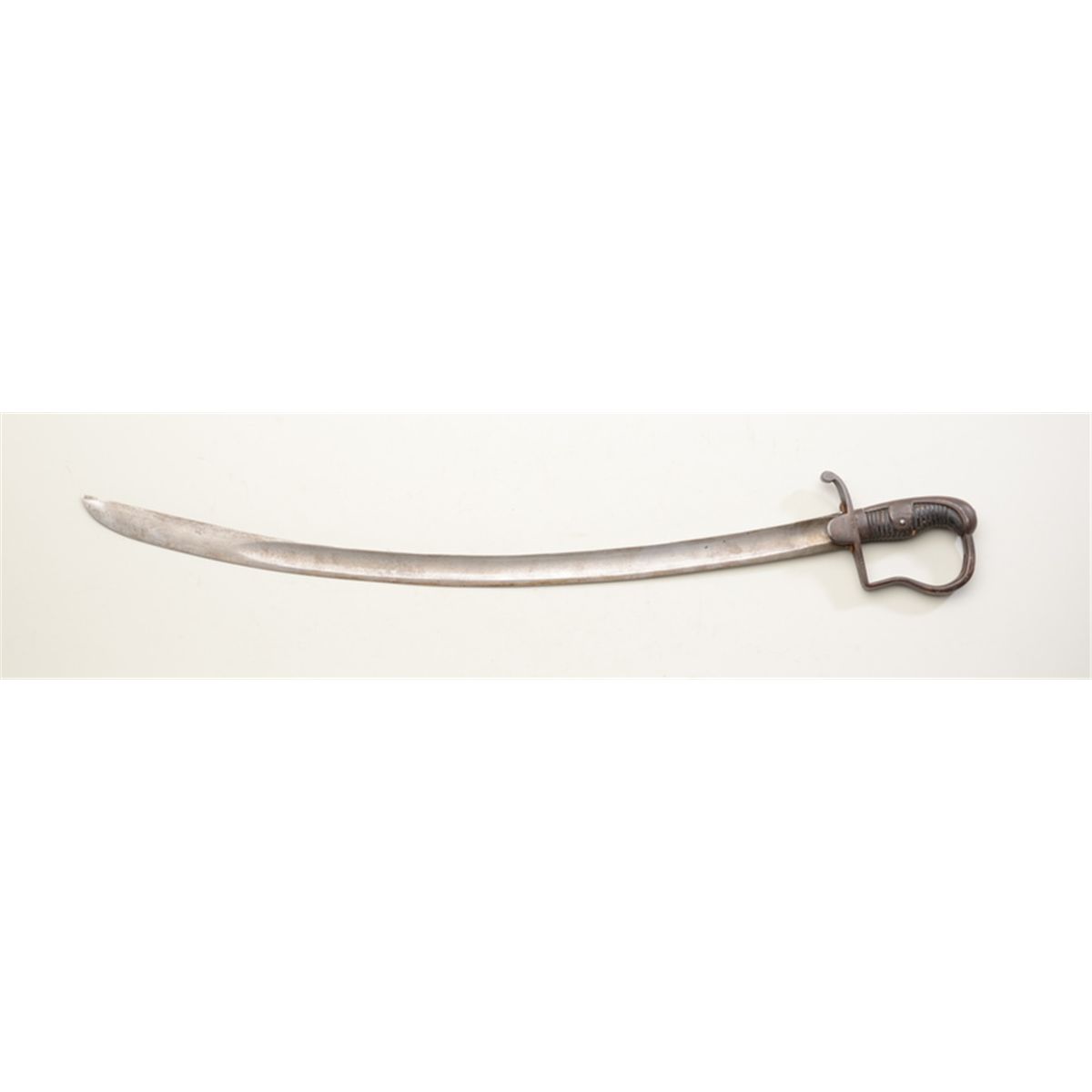 German Cavalry sword (no scabbard), 19th century, 32” blade with iron mounts marked “W. I. 1. 110”; in overall good uncleaned condition. Est.: $150-$300.