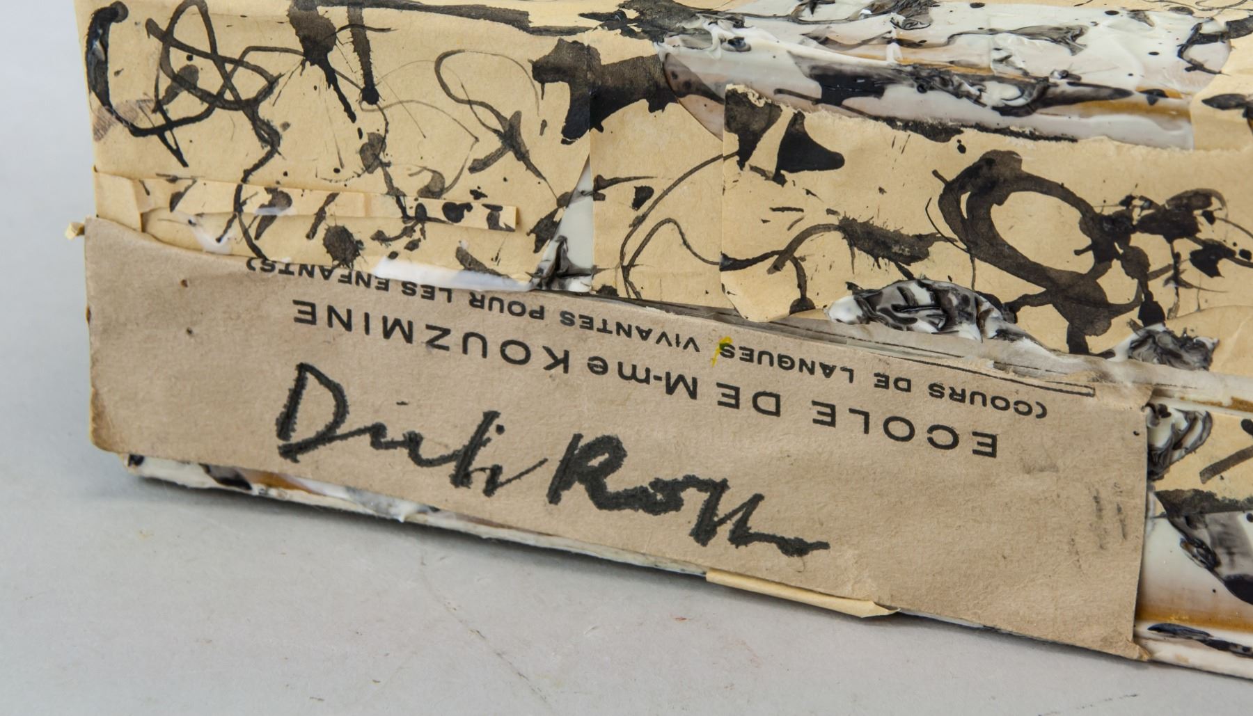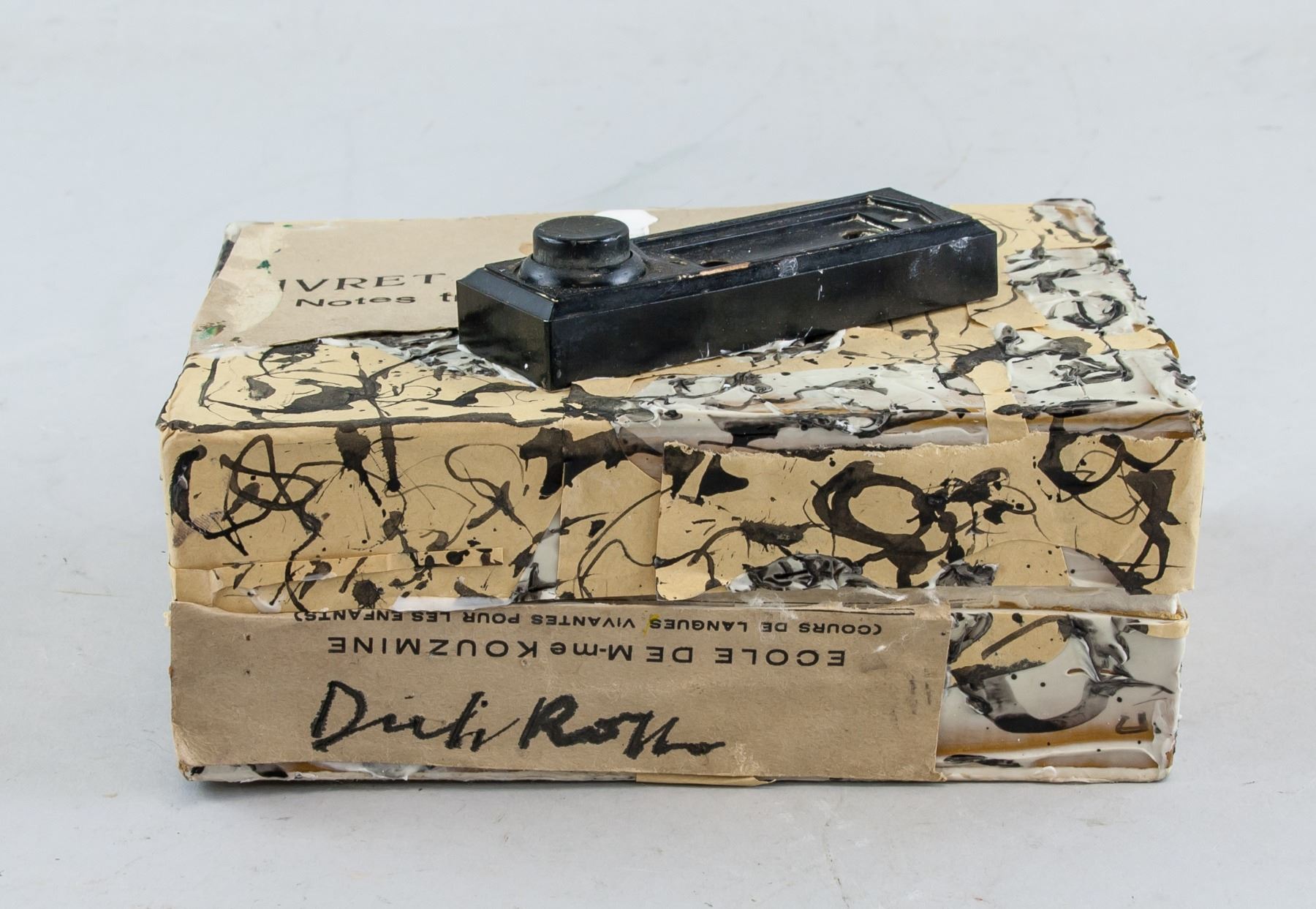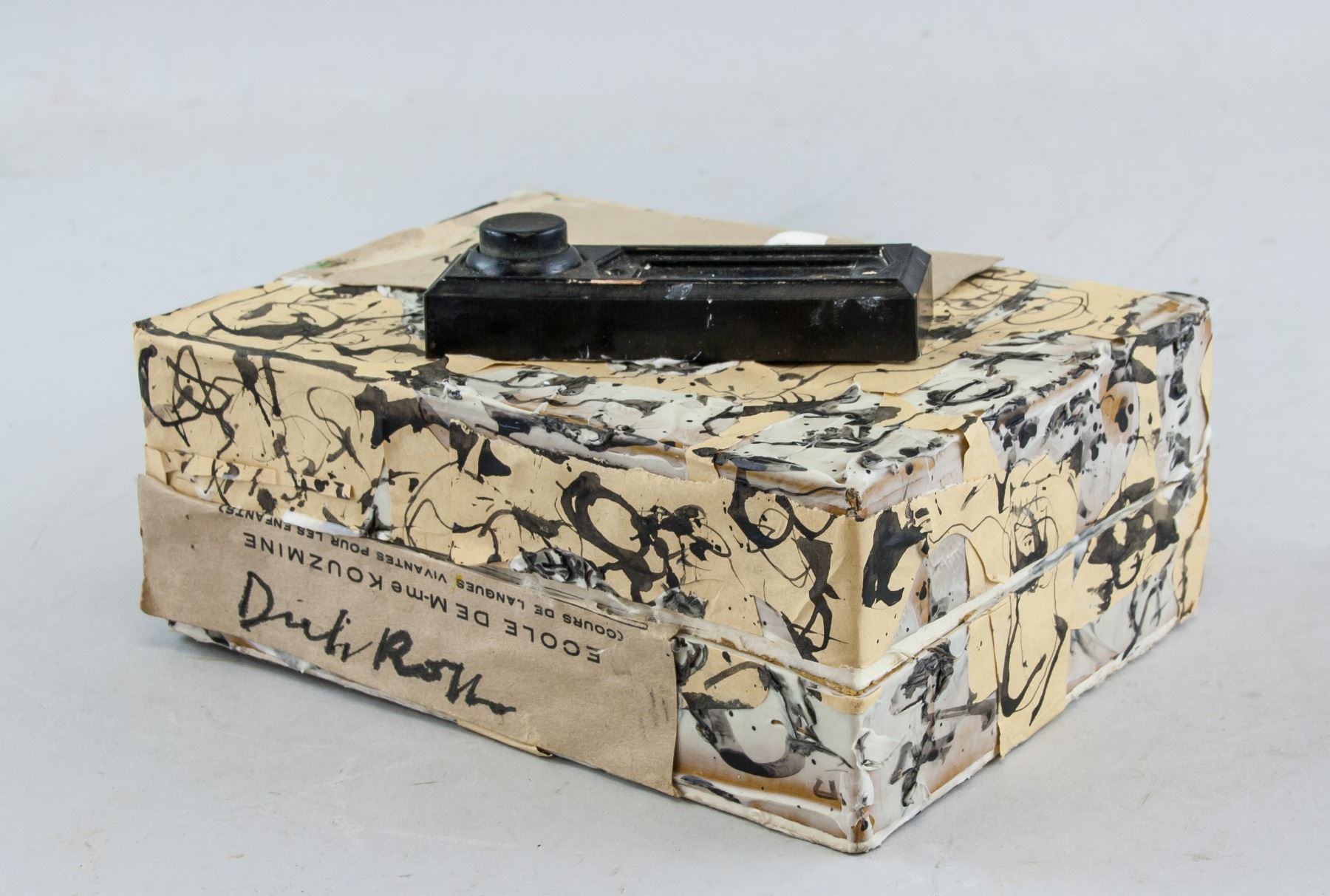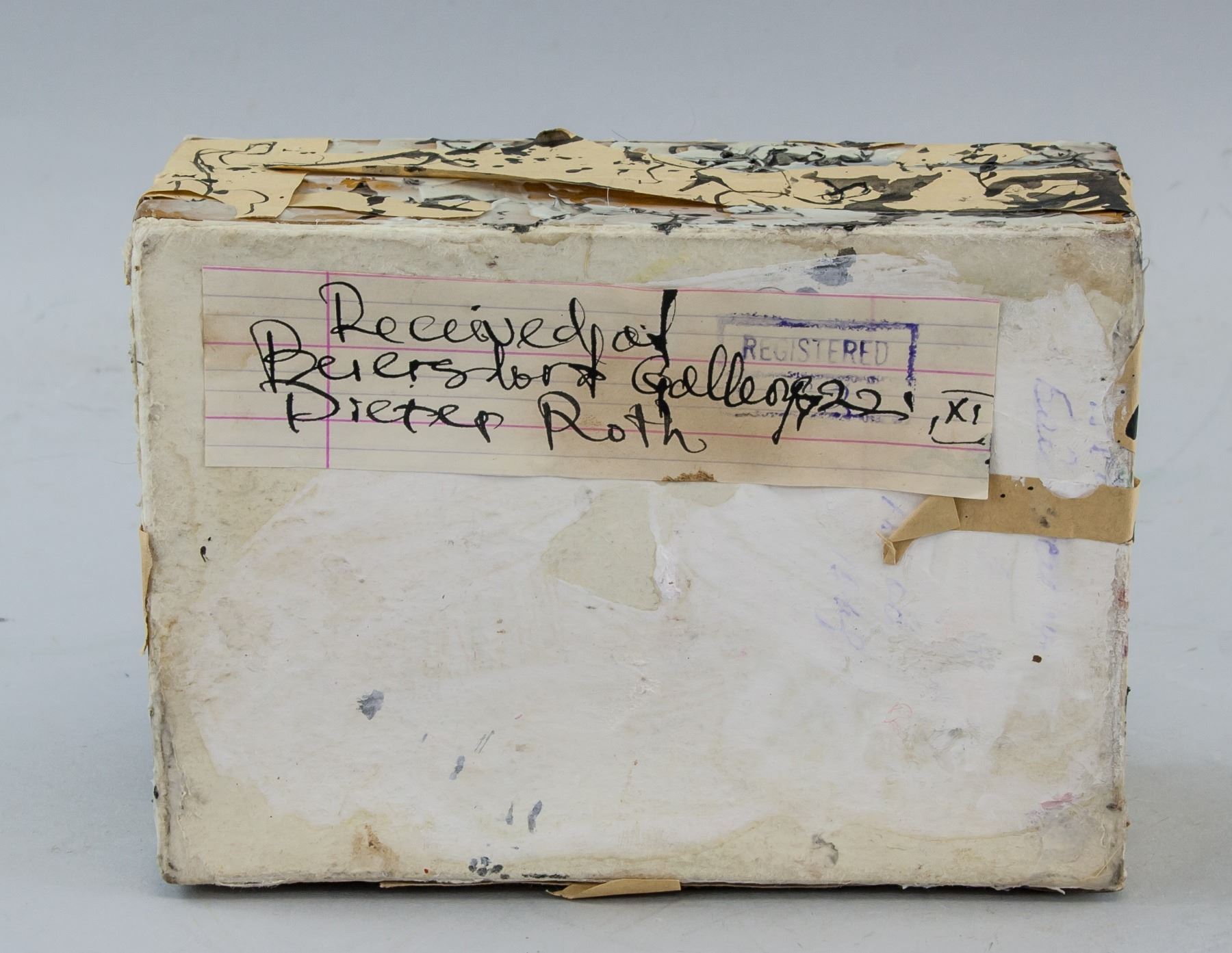 Mixed media, featuring a box. Signed illegibly with last name Roth on the base of box. 12 x 6 x 17 cm (4.7 x 2.4 x 6.7 inches)