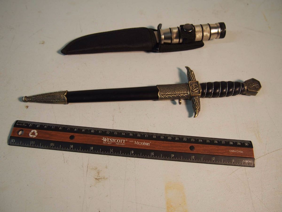 German Dagger with Swastika (Likely Reproduction) With Survival Knife, Both With Sheaths