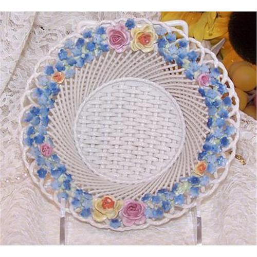 Up for your consideration is a German Dresden Reticulated & Weaved Basket w/Applied Flowers:
