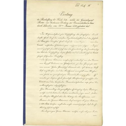 <B>[Texas]: </B></I><B><I>Vortrag Die Beschaffung Der Fonds Betr; Welche Der Generalagent Bene Zur Theilweisen Deckung Der Vereinsschulden In Texas....</B></I></B></I> Wiesbaden. 1850. 29pp. Folio, 34 x 22 cm. Very good. Manuscript reproduced in contemporary offset, printing letters from F. Roemer, Kroeber, and others. This lengthy report seems to have been prepared for financing purposes, the literal title being "Report on the Condition of funds, which the General Agent Bene has submitted on Jan. 22, 1850, for partial provision of the Verein in Texas." There is an account of the situation there, as well as information on stockholders in Germany and financing measures.<BR><BR><b>Shipping:</b> Flat Material, Small (<a target="_blank" href="http://www.heritageauctions.com/common/shipping.php">view shipping information</a>)<BR><BR><B>Important notic