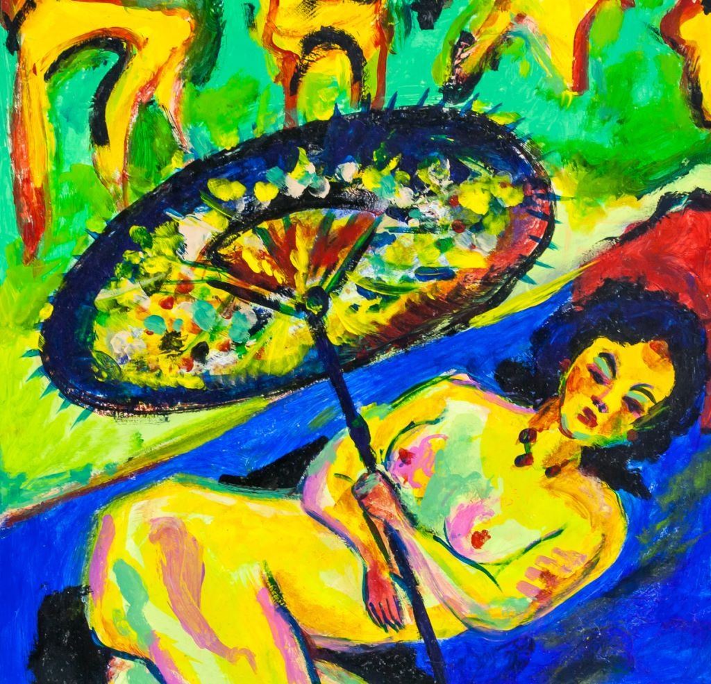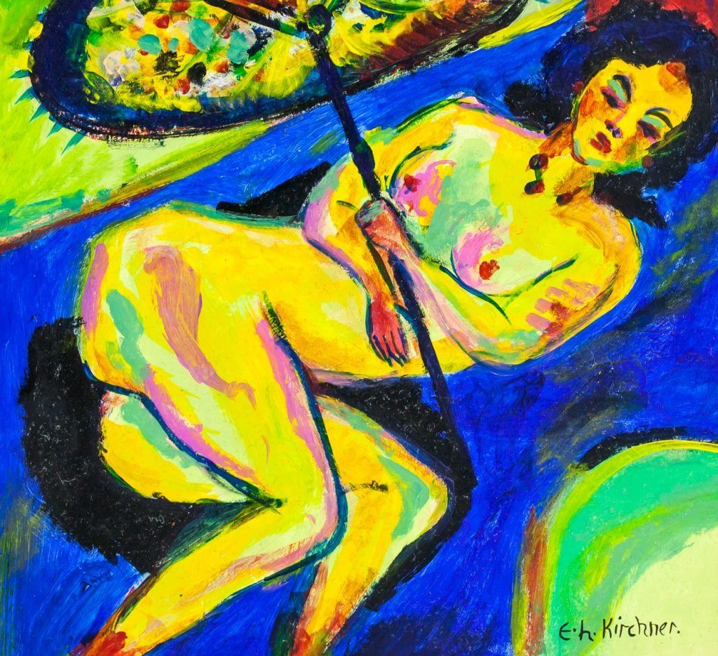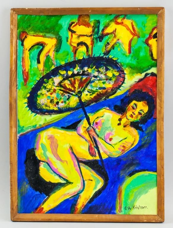 Oil on canvas, framed. Featuring a nude. Signed E. L. Kirchner on lower right corner. Stamped on lower right corner, verso. 48.5 x 34 cm (19.1 x 13.4 inches).