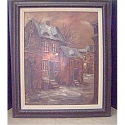 <table width="100%" border="0" cellspacing="0" cellpadding="4"><tr><td><em> </em></td></tr><tr> <td width="100%"> This is a beautiful rendering in the European style. The scene when shown to a native German was said to be typical of many of the farms, with the arched entrance leading to where the animals were kept behind the homes. Hesinger is said to be a known artist, though not renowned. It certainly would be a worthy addition to your existing art pieces... </td></tr><tr> <td> </td></tr><tr> <td>Reference #: HE661</td></tr><tr><td>Condition:Excellent</td></tr><tr><td>Year:1930's</td></tr><tr><td>Maker:artist- Hesinger</td></tr><tr><td>Height:20</td></tr><tr><td>Width:16</td></tr><tr><td>Title:German Farmstead at Night #2</td></tr><tr><td>Materials:canvas/wood</td></tr><tr><td>Location:Auburn, IN</td></tr></table>