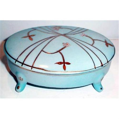 <tr><td>Title:German Footed Blue and Gold Gilt Dresser Box</td></tr>