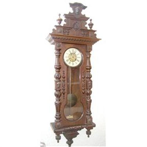 The walnut case has the heavy turned columns so popular in Germany during the last decade of the 1800s,and the case finish is original as well.