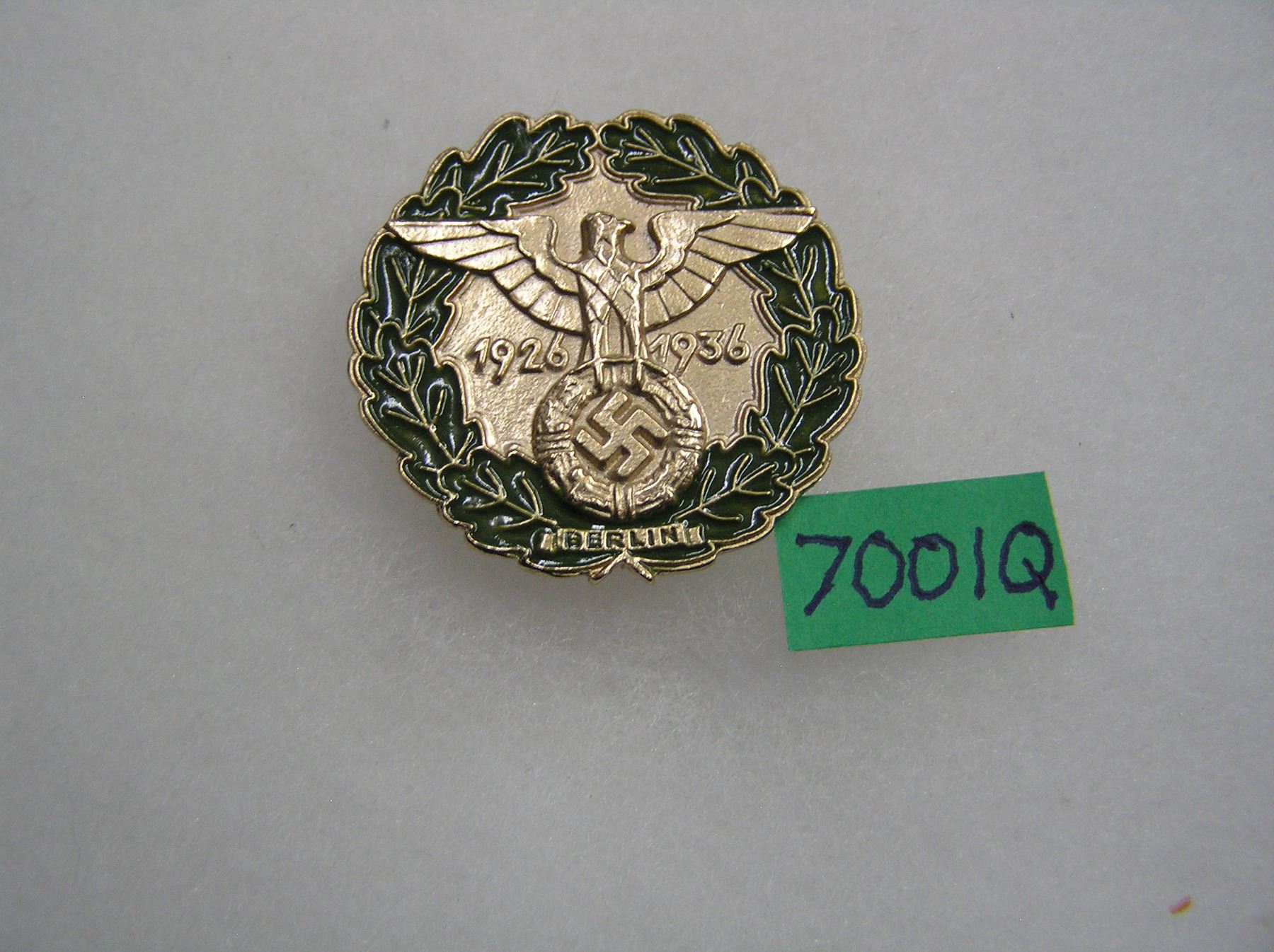 German Gau Berlin commemorative badge gold with green paint WWII style high quality reproduction collectors, re-enactors,historical or theatrical collectors piece est. value $75.00-$80.00
