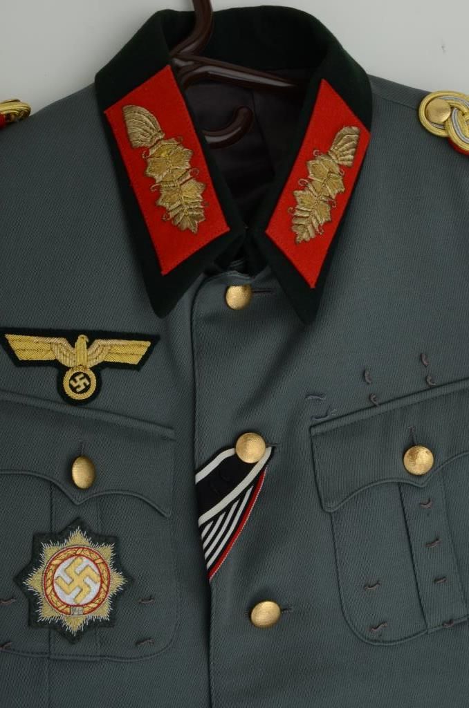 German General’s uniform jacket in overall very good condition with shoulder and lapel boards and some patches. Est.: $100-$150.