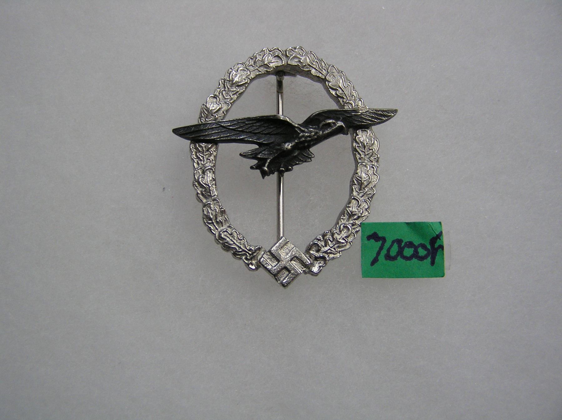 German Glider pilot's badge silver wreath with antique silver eagle WWII style high quality reproduction collectors, re-enactors, historical or theatrical collectors piece est. value $70.00-$80.00