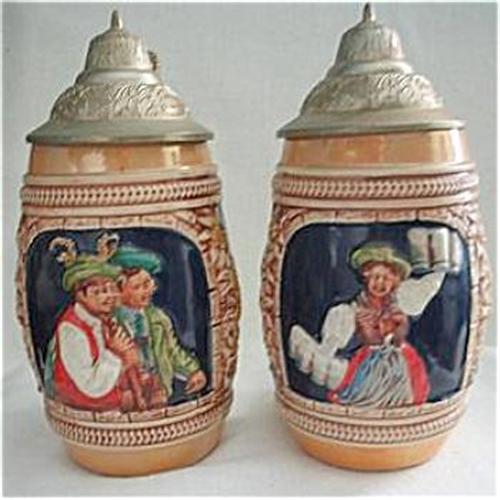 <tr><td>Title:German Handgemall Lidded Beer Steins</td></tr>