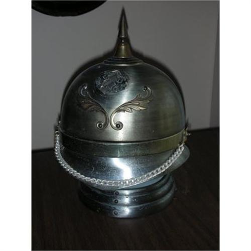 Vintage German helmet bar set fitted with a decanter and shot glasses in excellent condition. The interior is red enamel.
