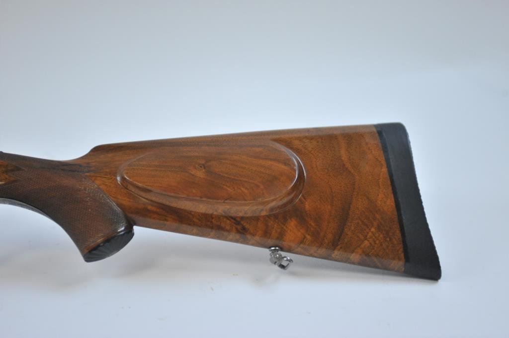 SxS barrels in 20GA and 25-35 Win caliber. The water table shows German pre-war proofs for 20GA and 6.2x52mm, S/N 210 with no maker or dealers name possibly a “Guild gun”. Shows a European quality older refurbish with 95% well replaced blue finish, polished to satin engraved frame, refreshed and checkered wood with thick recoil pad added. Locks up tight with very good bores. Est.: $1400-$2800