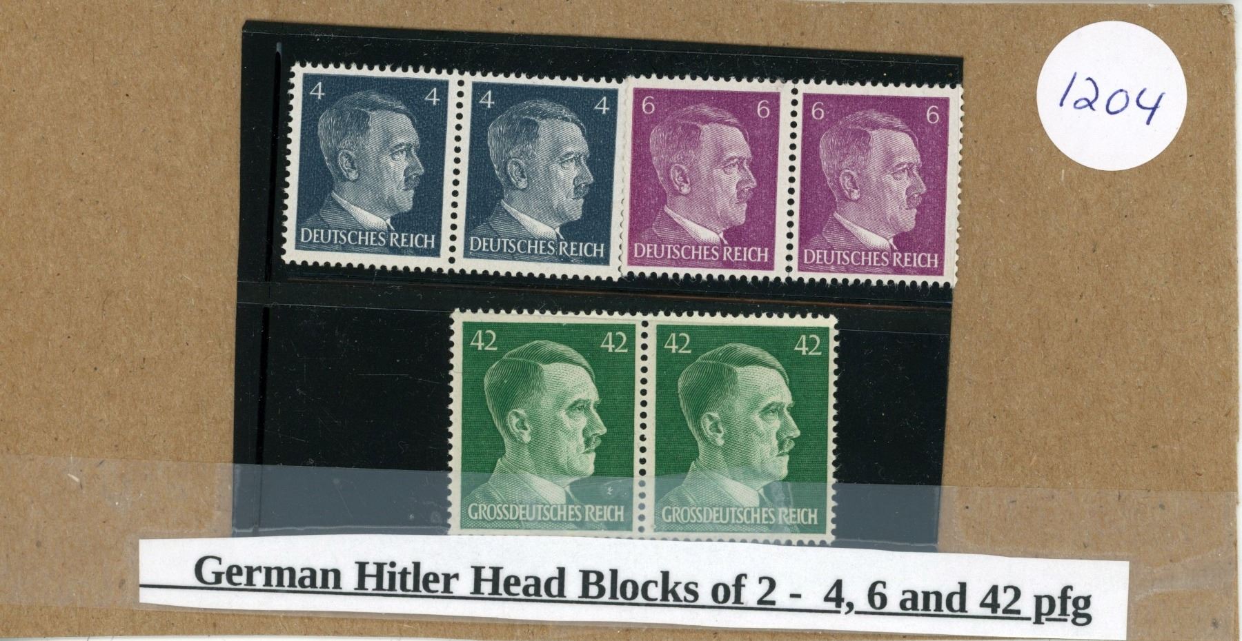German Hitler Head Blocks of 2 - 4, 6 and 42 pfg
