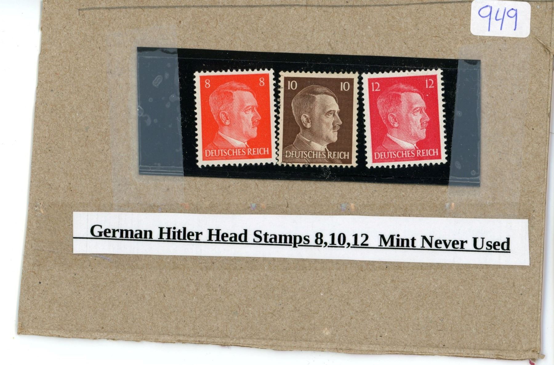 German Hitler Head stamps 8, 10, 12 - Mint never used