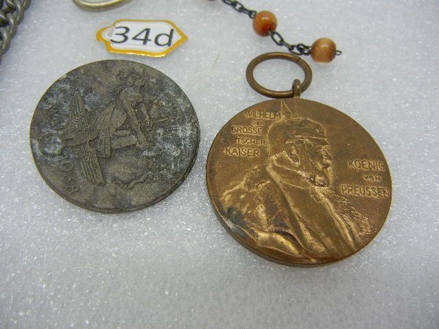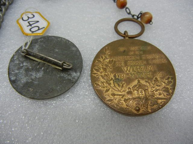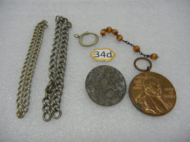 German Kaiser Wilhelm Pendant, 1938 German Swastika Pin, and Misc. Chain