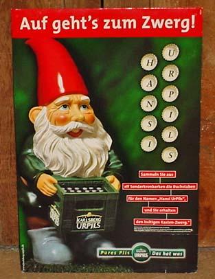 German Karlsberg Urpils Beer Advertising Sign - Double Sided - Cardboard. Approx. 15.75" X 23.5"