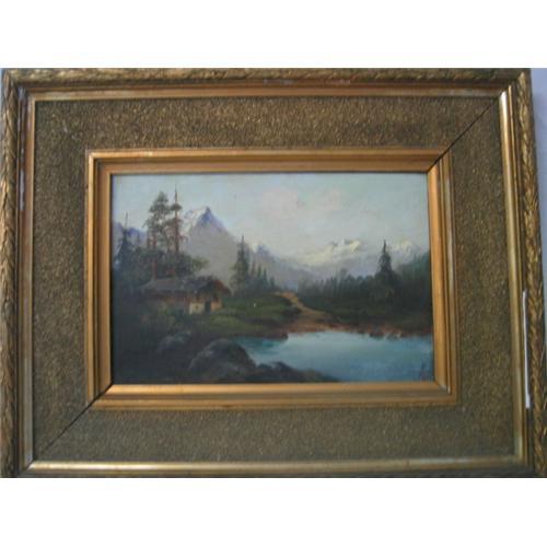 Is a beautiful German Landscape with a Cabin in the mountain.Painted on Board