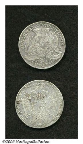 <B>A pair of 18th Century Talers as follows:</B></I> Baden 1765 S W, Dav-1933, KM108, F-VF; and a Nurnberg 1765 SS-GNR, Dav-2490, KM347, F-VF.