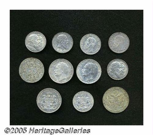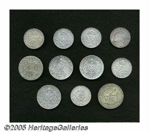 <B>Assorted Baden and Hamburg lot consisting of:</B></I> Baden 2 Mark 1896-G, KM269, VF; Baden 2 Mark 1900-G, KM269, VF; Baden 2 Mark 1902, KM271, XF; (2) 2 Mark 1906, KM276, XF; 3 Mark 1910-G, KM280, VF; 3 Mark 1912-G, KM280, VF-XF; Hamburg 16 Schilling 1726-IHL, KM166, VF; Hamburg 32 Schilling 1796-OHK, KM229, VF-XF; Hamburg 2 Mark 1906-J, KM294, lightly cleaned XF; and a Hamburg 3 Mark 1908-J, KM296, VF-XF. <B>A sold as is, no return lot.</B></I> From the Dr. Kurt Peters Collection.