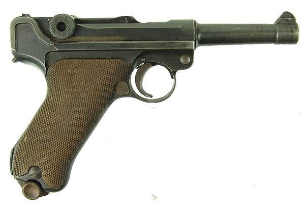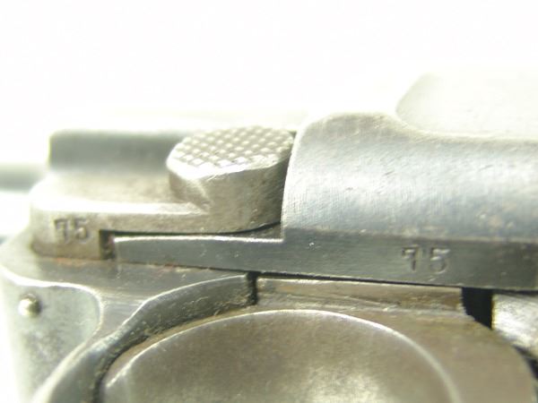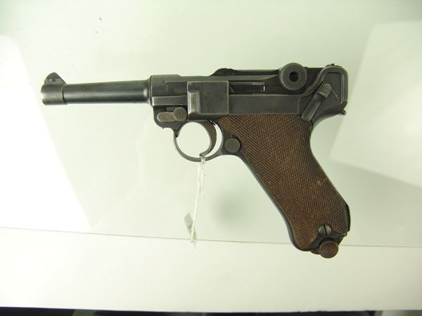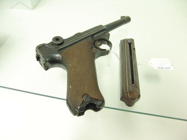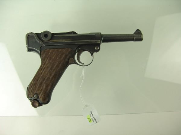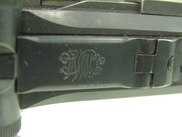 Rare, early .30 cal. pistol with 3-1/2" barrel, fine checkered grips, and single clip. From Deutch Waffen-und Muntionsfabriken. Very good condition. S/N 1875.