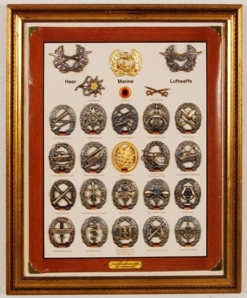 26 examples of German war medals on display board, framed. Frame measures 16 1/4" x 19 3/4".