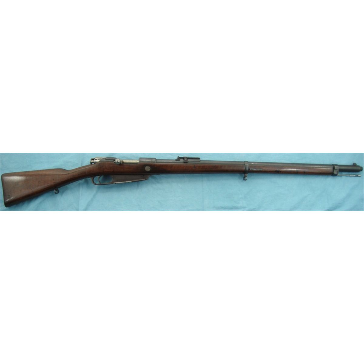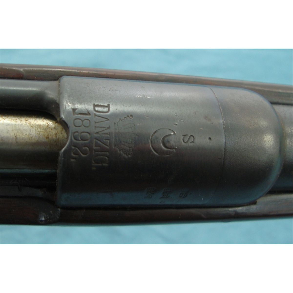 #2386P; 8mm. Antique. Receiver is marked "Danzig 1892". Most visible numbers match. Metal shows brown patina. Stock is in good overall condition.