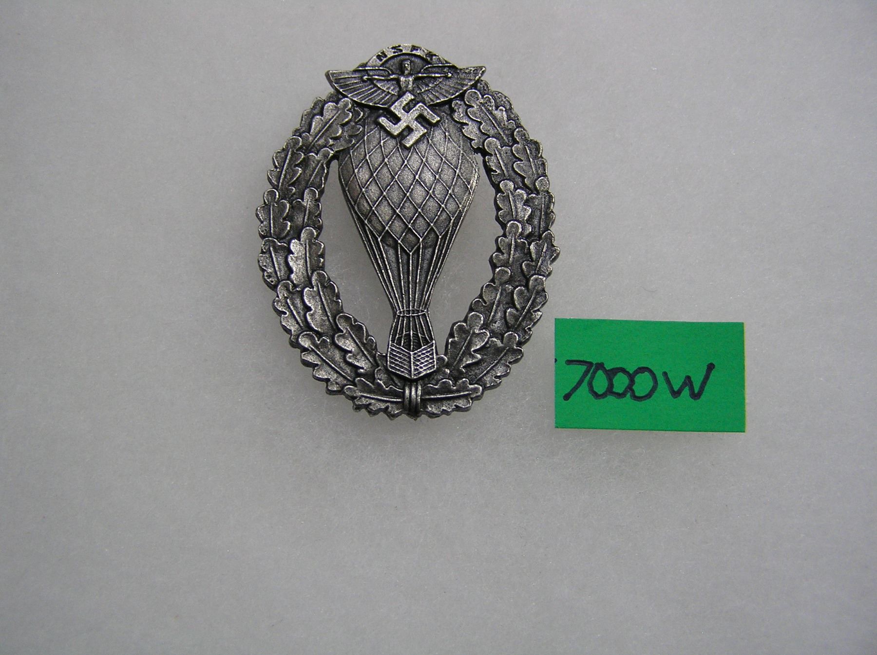 German N.S.F.K. free balloon commanders badge antique silver color WWII style high quality reproduction collectors, re-enactors, historical or theatrical collectors piece est. value $65.00-$80.00