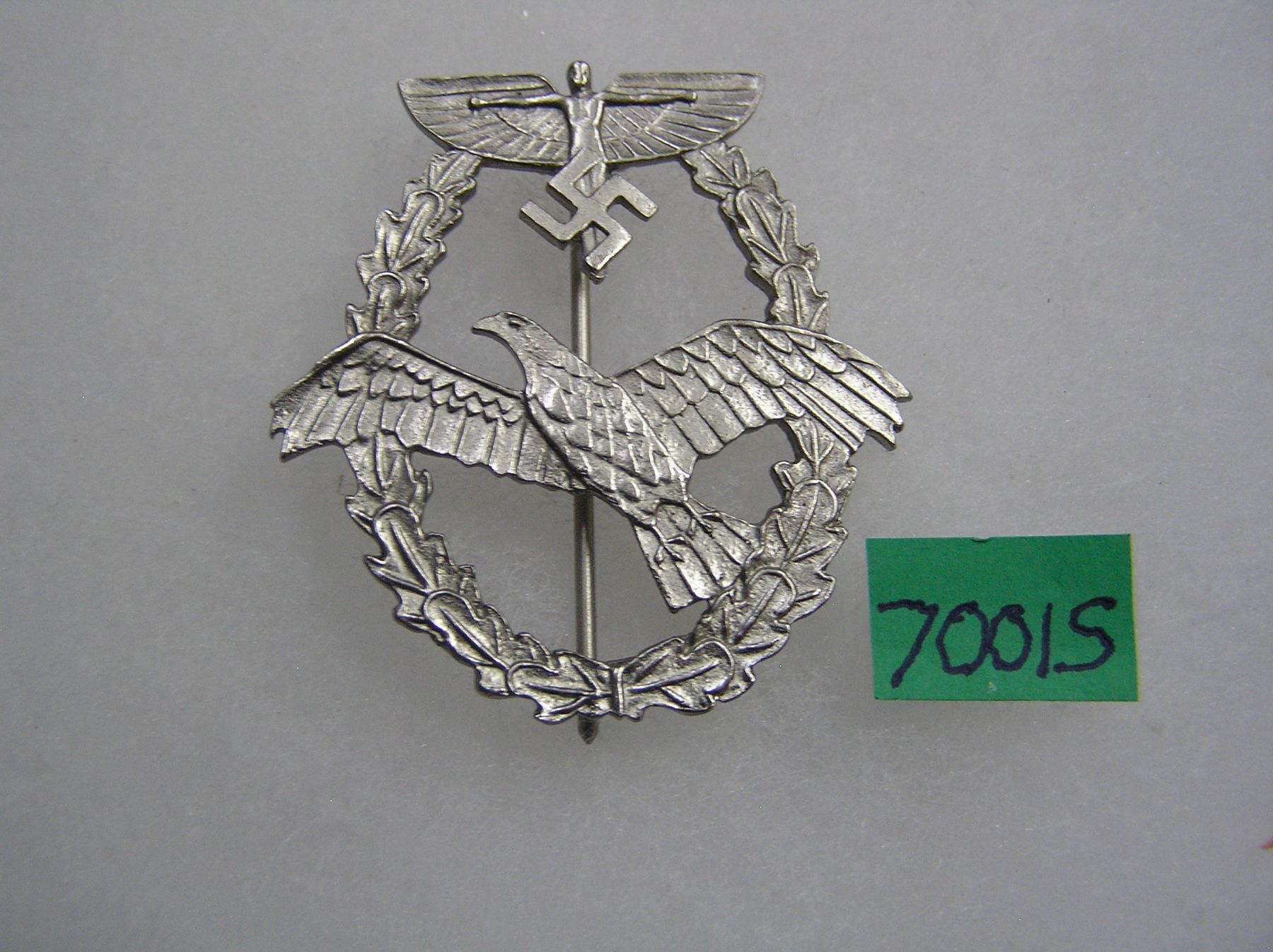 German N.S.F.K. pilot's badge silver color WWII style high quality reproduction collectors, re-enactors,historical or theatrical collectors piece est. value $65.00-$75.00