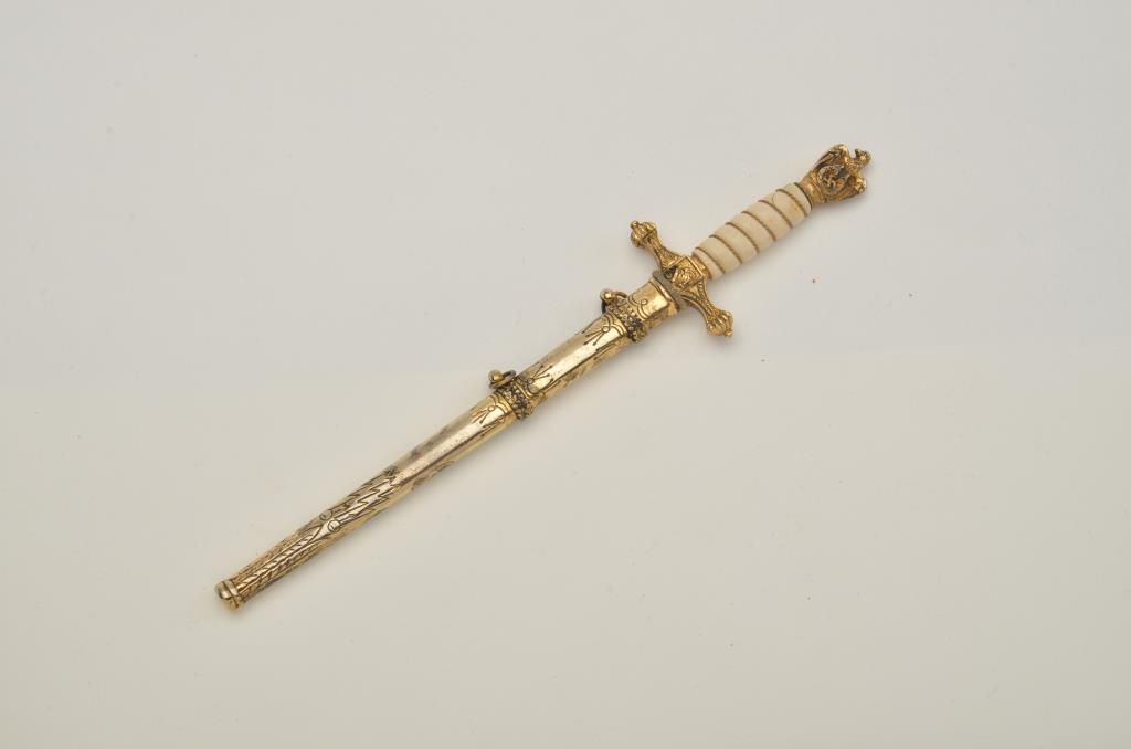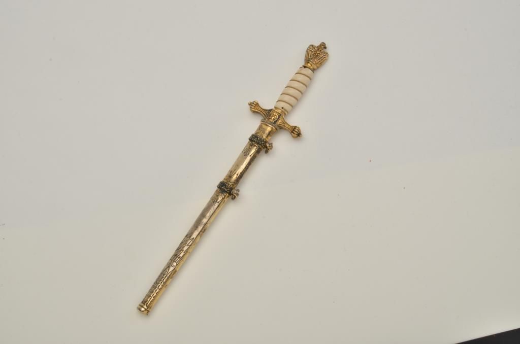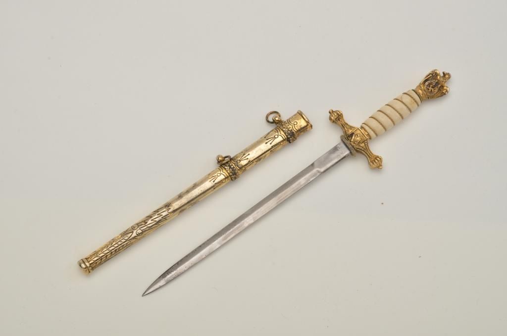 German Naval miniature dagger and sheath in very good condition. Est.: $150-$250.