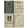 German Nazi ID book. Paper booklet contains the signed photo of a man named Heimer, along with quite a few stamps and hand notations in the fields inside. One stamp in the beginning dates to 31 January 1938. A ''Luftwaffe'' stamp on the front cover indicates book was used by the German air force. Runs 52pp. Measures 4.25'' x 5.75''. Toning and separation of cloth backstrip at the base of the spine. Very good overall.