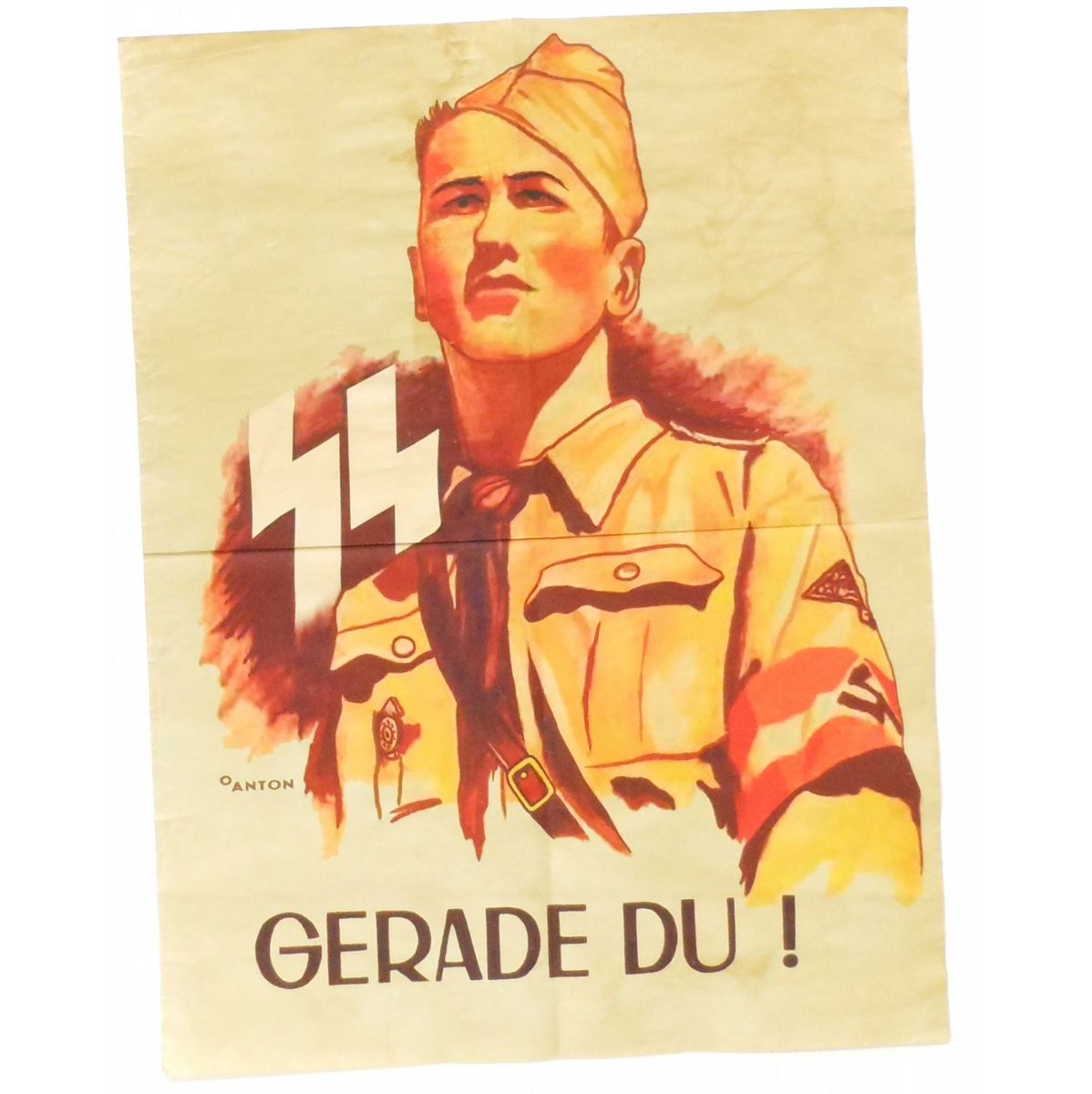34"X 25 3/4â. German Nazi WWII Poster. "Gerade Du !â. Good Condition with wear including creases from being folded, small tears/rips to the edges and some discolorations. (See Pictures)