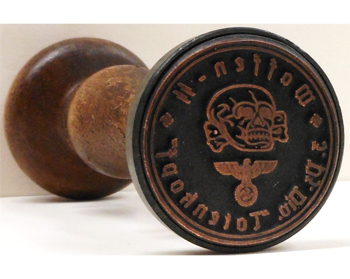 4 1/2" Tall and 1 1/2" Wide. German Nazi WWII SS "Tottenkopf" Rubber Stamp. Wooden Handle. Great Condition.. (See Pictures)