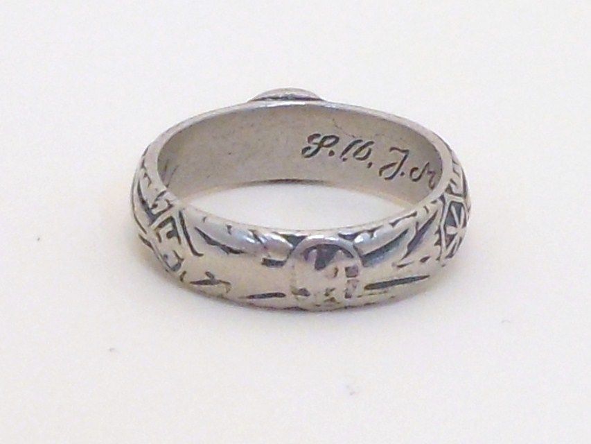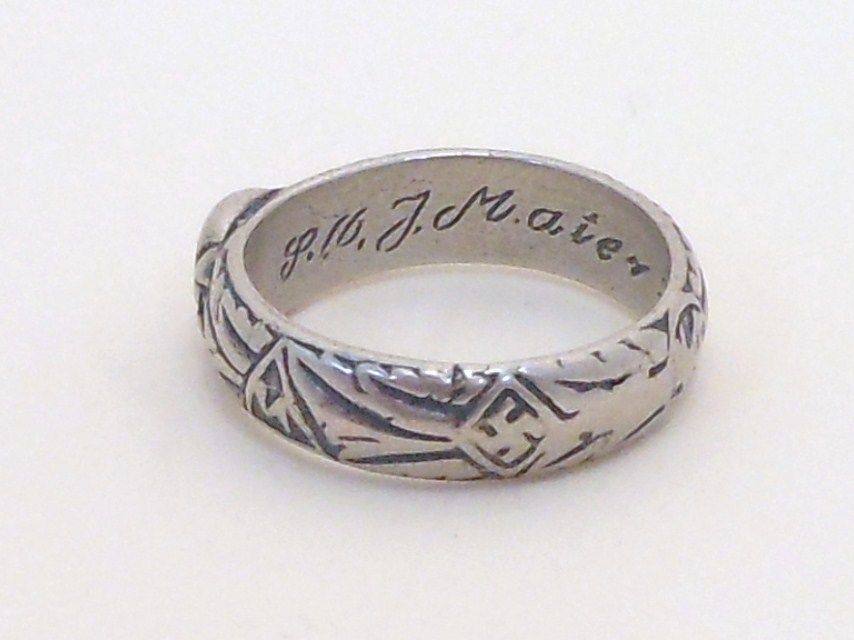 Size 11. German Nazi WWII SS Wedding Silver Ring. Is engraved on the inside with a date (probably the date of marriage), a name (probably the name of the SS man), and signature of Himmler. Great Condition.