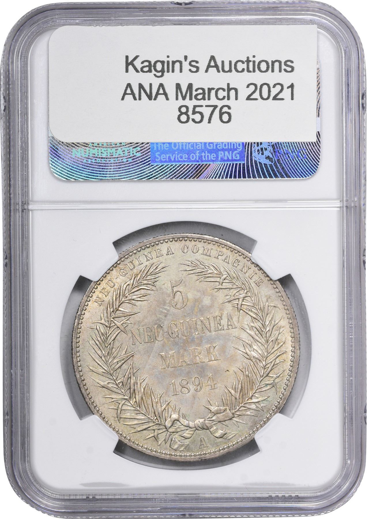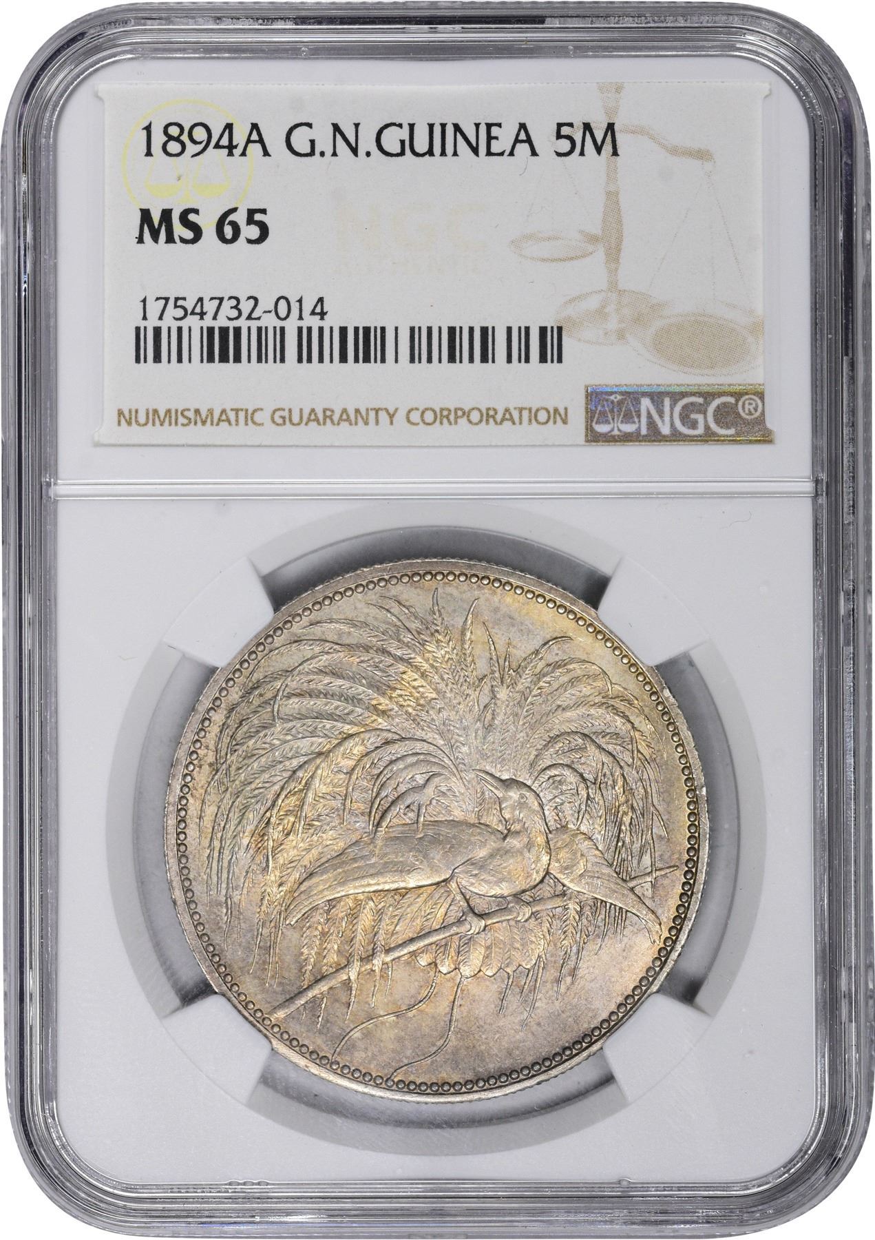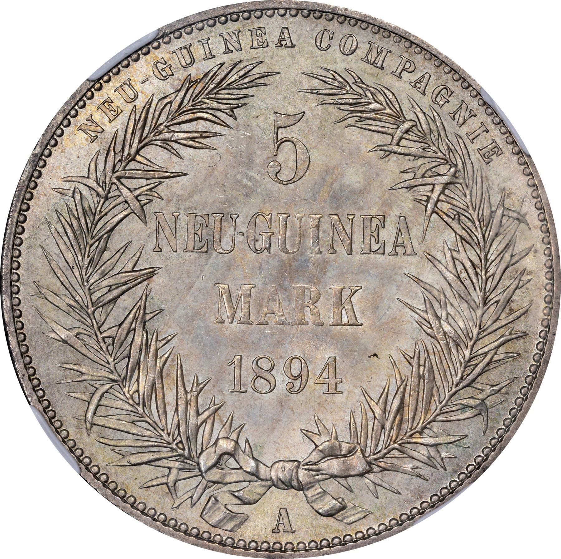 Title: German New Guinea. 1894-A 5 Marks. Berlin Mint. KM-7. MS-65 NGC.