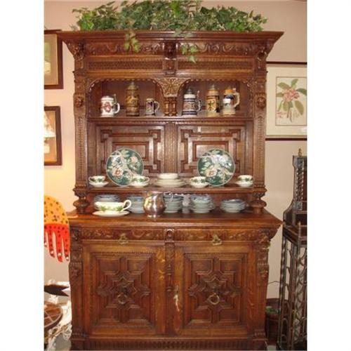 <tr><td>Title:German Oak Hand-Carved Bookcase</td></tr>
