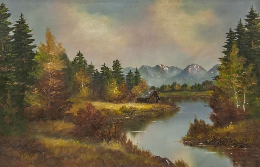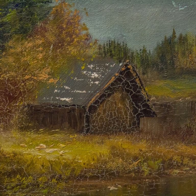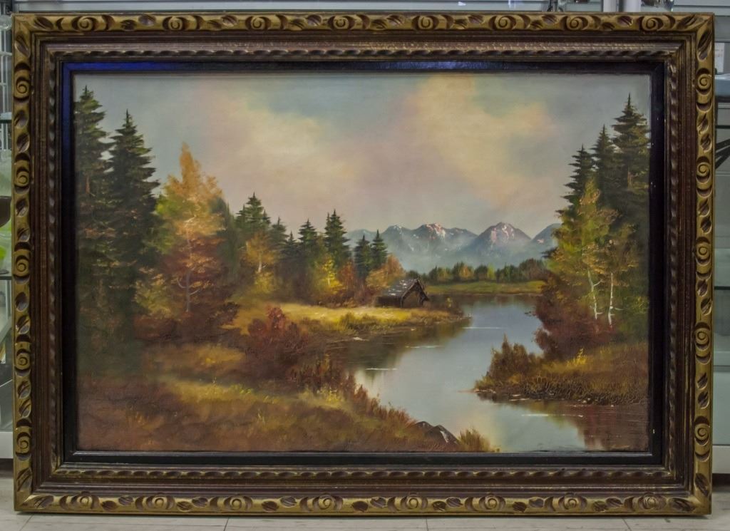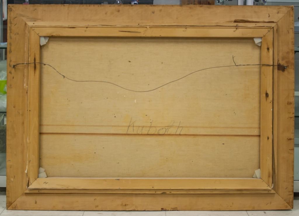 Oil on canvas, framed. Featuring landscape scene. Signed "Kuboth" to the bottom right, same inscribed on verso. Attributed to J. Kuboth (1900-unknown). Canvas size: 59 x 90 cm (23.3 x 35.5 inches). Frame size: 77 x 108 cm (30.3 x 42.5 inches).