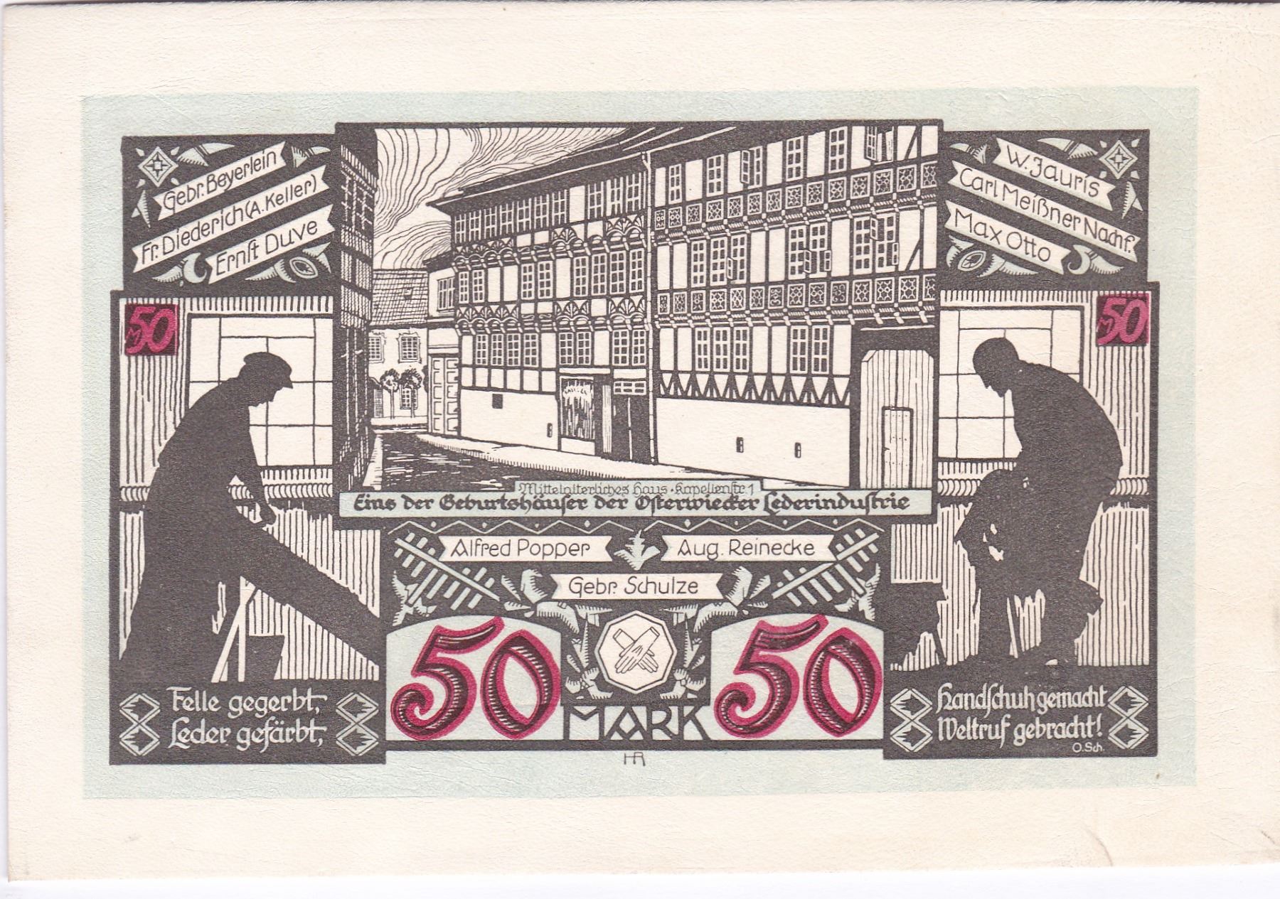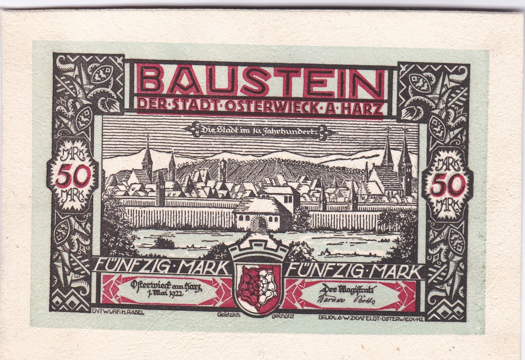 1922, 德國- 奧斯特維克, 50 馬克, 皮革製緊急票