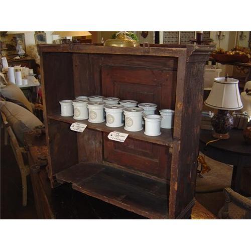 This is a German Polychrome hanging cabinet dated 1889. There are two open shelves in the back, and it measures 25 1/4 x 24 wide. The depth is 10. This is a wonderful piece. Please contact me for more photos or information. Thank you,