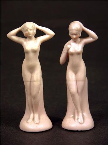 Two German Porcelain Nude Figures, weighted bases with cork bottoms. 3 1/2 inches tall.