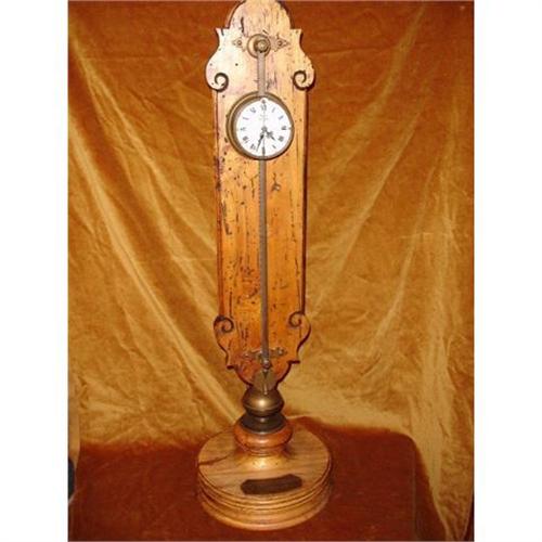 <tr><td>Title:German "Saw" Clock on wooden standard </td></tr>