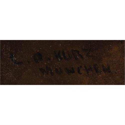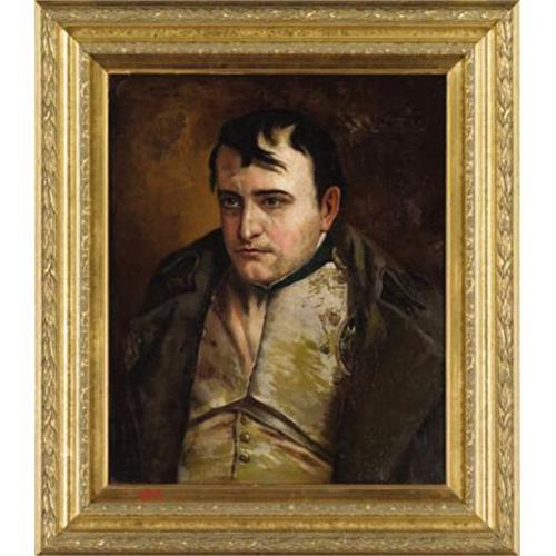 <B>GERMAN SCHOOL (19th Century)</B></I><BR><I>Portrait of Napoleon</B></I><BR>Oil on panel<BR>24 x 20 inches (61.0 x 50.8 cm)<BR>Signed upper left:<I> L.A. Kurz/Munchen</B></I><BR> <B>Condition Report:</B> Scattered losses throughout but paint is stabalized with thick varnish, otherwise good condition.<BR><BR><b>Shipping:</b> Framed - without Glass, Medium (<a target="_blank" href="http://www.heritageauctions.com/common/shipping.php">view shipping information</a>)