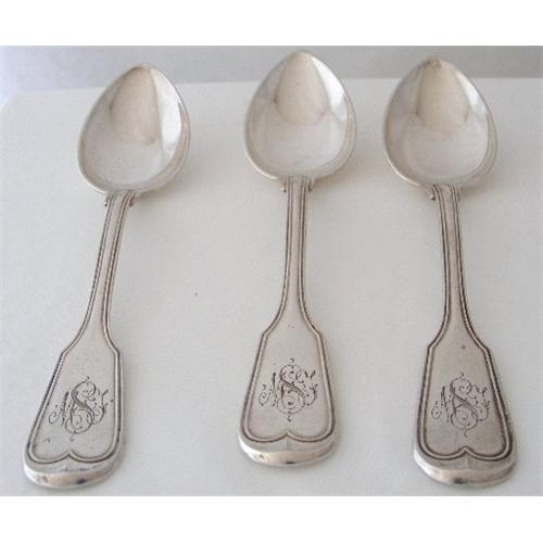 3 Tablespoon. German bearing the Crescent and Crown German Silver Mark and "800" (800 parts Sterling 200 parts nickel) In very good condition with only normal use marks.