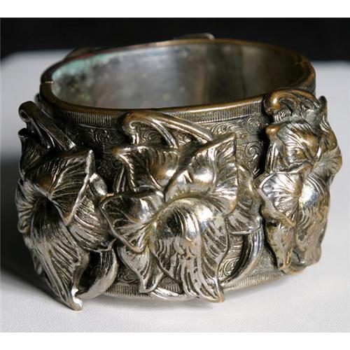 <tr><td>Title:German Silver Bangle Bracelet Floral Design</td></tr>