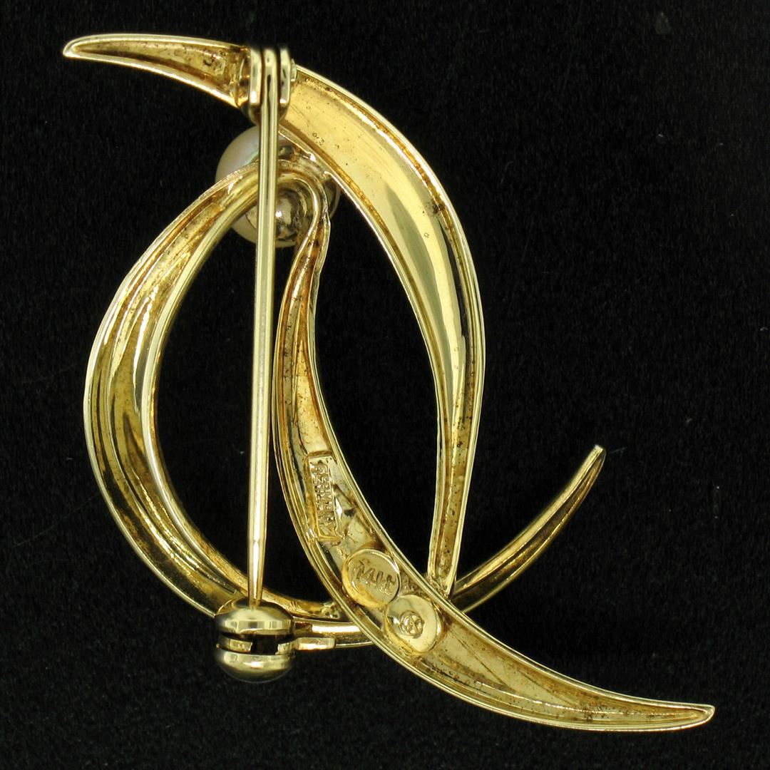 German Solid 14k Yellow Gold 5.9mm Round Cultured Pearl Textured Bird Brooch Pin