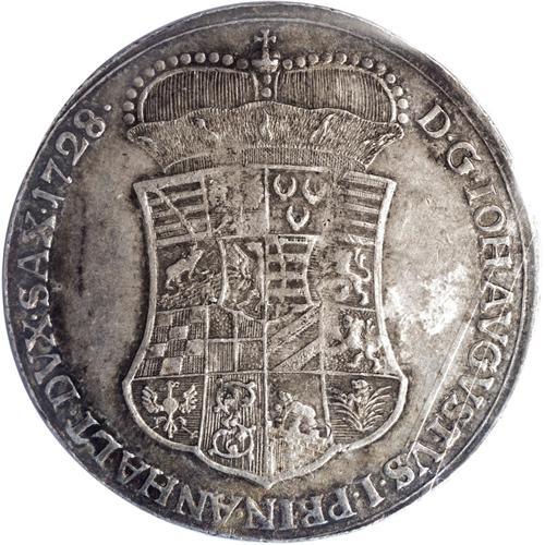 <B>Anhalt-Zerbst. Johann August 2/3 Taler 1728 JJG,</B></I> KM31, Dav-205, lightly toned XF and a scarce one-year type.<BR><BR><b>Shipping:</b> Coins & Currency (<a target="_blank" href="http://www.heritageauctions.com/common/shipping.php">view shipping information</a>)