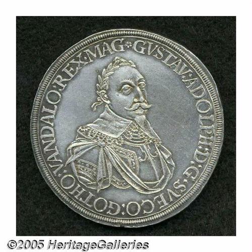 <B>Augsburg. Gustavus Adolphus Taler 1632,</B></I> Bust right/Crowned arms, KM-A68, Dav-4543, nice XF/AU with minor obverse hairlines.