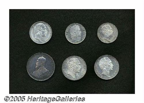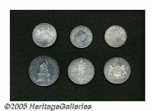 <B>Bavaria. A mixed lot as follows:</B></I> 1 Gulden 1840, KM414, XF; 1 Gulden 1855, KM445, AU; 1 Taler 1860, KM468, AU; 2 Gulden 1855, KM446, Choice AU; 2 Gulden 1855, KM465, XF; and an 1892 silver medal, 40 mm, bust of Prince Regent Luitpold left/Statue of the Army in the halls of Marshalls in Munich, XF with the reverse cleaned. <B>A sold as is, no return lot.</B></I> From the Dr. Kurt Peters Collection.